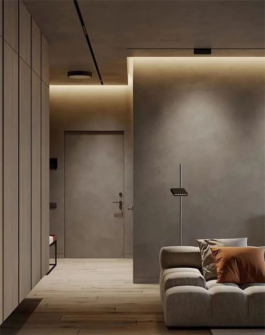 ①基礎照明:讓整個空間有基本的亮度,符合正常走路、取物、翻箱倒柜等活動的燈光需求。基礎照明適合用燈帶、筒燈、泛光條等,重點是不要太亮。基礎照明太亮容易喪失了家放松舒適的感覺,也很難做出有層次、有氛圍、高品質的燈光效果。