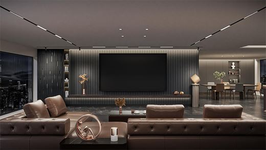 燈具合理布局,勾勒出空間的層次感,燈光與空間相融合,和諧統一,設計感強;