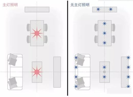 簡單來說,“無主燈設計”就是在形式上取消單一主燈的照明形式,取而代之的是更有層次的“點照明”。