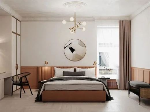 如果你想要既有氛圍又兼顧照明需求的話,那你可以選擇主燈+落地燈+輔助照明的形式進行互補。主燈能夠給整個空間帶來足夠的照明,落地燈可以選擇放床邊,可以滿足睡前的照明需求,踢腳線可以坐落在床邊,這樣老人起夜安全保障還不擔心睡意被驅趕。