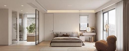 簡單干凈的硬裝空間,通過軟裝的搭配,在造型與材質(zhì)上凸出奶油風的氣質(zhì)。