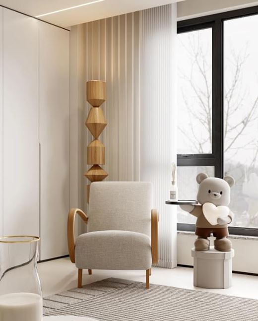 在沙發(fā)材質(zhì)上選擇質(zhì)感柔和的珊瑚絨,給人舒適、溫馨的感覺。在沙發(fā)旁搭配一個可愛的裝飾品,打造輕松自在的空間氛圍。