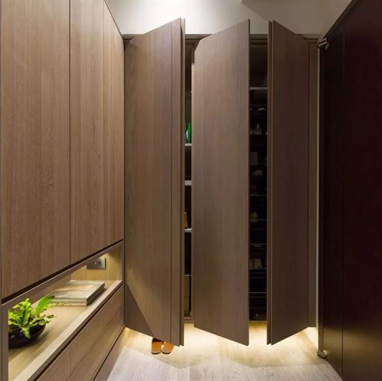 鞋柜中間可以掏個洞,安排條小燈帶;如果有換衣鏡或換鞋凳的話,筒燈和壁燈都是不錯的搭配。