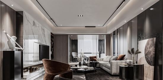 無主燈設計是指通過多光源的組合,將照明功能分散到各個角落,以實現空間的整體照亮。這種設計理念注重光線的分布和層次的搭配,使照明更加均勻、柔和,營造出舒適的視覺環境。