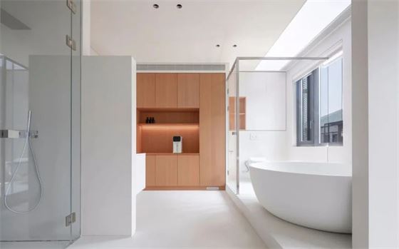 在空間設計中,通過引入柔和的弧線來取代生硬的墻體,可以營造出更加柔和、舒適的氛圍。在原本硬朗、冷峻的直線條空間中,柔和的弧線本身成為一種裝飾元素,豐富了空間中的幾何關系。將直線和圓弧相結合,使得極簡空間呈現出獨特的韻味,這是其他設計風格所無法比擬的。