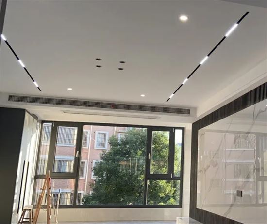 還有一種隱藏式的洗墻燈,向上發光,利用墻面漫反射間接照明,光線非常柔和,氛圍感強,施工簡單,成本一點也不高。