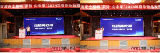 經銷商代表發言環節更是亮點紛呈。西安運營中心的曾憲柱與平輿縣彩霞燈飾的王彩霞分享了各自與澳克士照明合作的成功經驗,他們的話語中流露出對澳克士品牌深厚的信任和無限的期待。