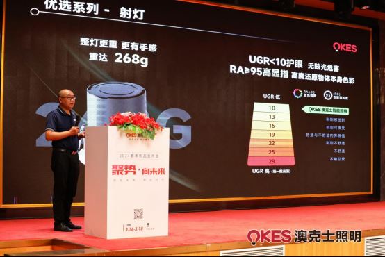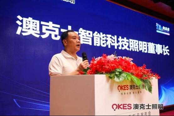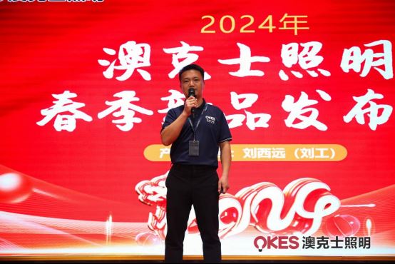 隨后,新品發布環節如期而至。智能商照總監敖云山與研發部經理劉西遠聯手呈現了一場精彩絕倫的新品秀。他們詳細闡述了每款新品的創新之處,從設計理念到技術實現,無不透露出澳克士在智能照明領域的深厚實力。