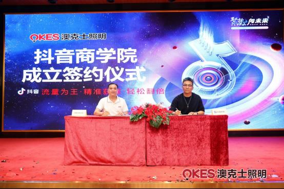 在全場嘉賓的見證下,貴州運營中心簽約儀式和抖音商學院簽約儀式隆重舉行。這不僅標志著澳克士照明在區域市場和新媒體領域的布局再下一城,更象征著公司與合作伙伴們攜手共創輝煌未來的堅定決心。
