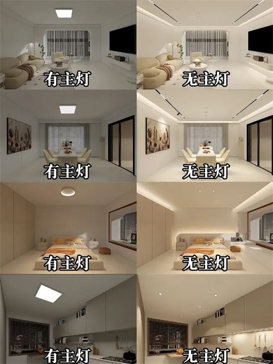 通過調(diào)整無主燈的亮度、顏色和燈光模式,可以輕松營造出不同的場景氛圍,適應(yīng)不同的生活場景和情感需求。