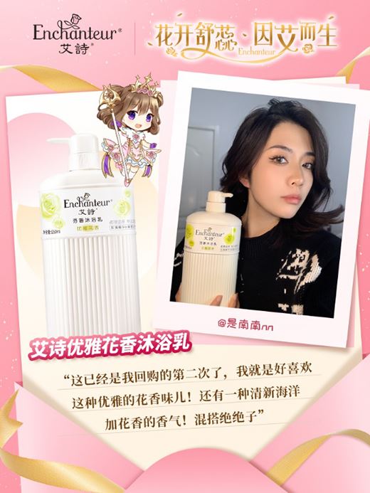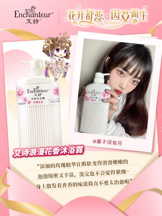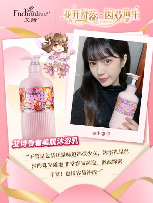 艾詩香奢美肌系列沐浴乳,采用活花萃取技術,及時捕捉自然花開的香氣,不傷害花朵,還原自然本香。舞中仙子、美麗傳說、天使之吻、純真愛慕四款香氣幽淡自然,輕盈的在肌膚上跳躍,留香持久。均添加了11種氨基酸,呵護敏感肌膚,提供優良的保濕效果,尤其是舞中仙子沐浴乳,還包含玻尿酸鈉成分,長效保濕肌膚的同時緊致肌膚,增加肌膚彈性。