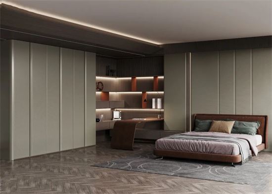 超高門柜采用一門到頂的設計,充分利用墻面垂直空間,大大減輕臥室的收納壓力。