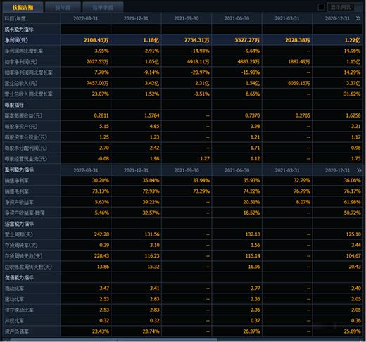 財務數據如下表所示:
