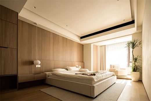 主臥整個空間色調以奶油色和木色為主