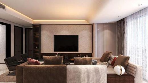 客廳的裝修風格,是關乎家庭“顏面”的事情,也是彰顯主人品味的象征,所以客廳在家裝設計的占比極大。推開家門溫暖的色調映入眼簾,搭配上深色系的軟裝,完美平衡了空間的明暗感覺,使空間的色彩層次與藝術韻律相互映襯,為家體現出一個高品質的“顏面”。