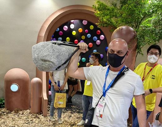 進入其中,“材料體驗區”充分運用石材、金屬、織物和皮革等不同效果,以及輕質真石漆、麻砂石、巖彩石、立體巖彩石等媲美真實材質肌理的涂料,讓觀展者在強烈的視覺及觸感沖擊下,體會到立邦涂料的“神奇”之處,為觀展者帶來頗具趣味性的巧思設計像隨手就能拎起的“石材”手袋,一人就能輕松抱起的“石獅子”等等夢幻場景。