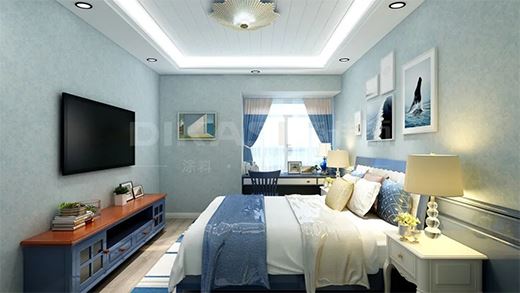 色調(diào)方面,床和床頭柜的一致起到很好的協(xié)調(diào)作用,并且臥室掛飾元素,讓海洋的氛圍更加突出,靜臥其間,如置身于地中海,伴著清風(fēng)海浪,享受一夜安眠。