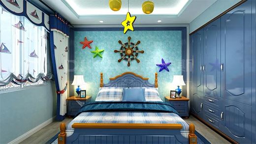 地中海風(fēng)格講究隨性自在,追求舒適,用作兒童房正合適不過。藝術(shù)壁材紋理豐富,藍白色跳躍其間,將海洋元素應(yīng)用到家居設(shè)計中,給人明快的舒適感,點綴出靈動爛漫的設(shè)計感,天性活潑的孩子一定喜歡。