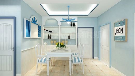 客廳的旁邊就是餐廳,開放式的布局顯得更為寬敞明亮。餐廳里墻面上是地中海的掛畫和裝飾,充滿濃濃地中海風(fēng)情。