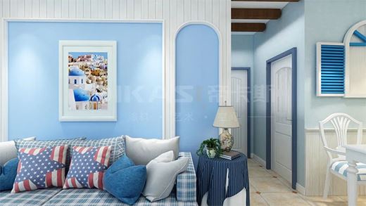 淺藍色的墻壁,淡雅如淺海,如夏日海風(fēng)吹過,將它用于室內(nèi),增加其柔軟度,讓空間更加迷人。打開窗戶,鵝黃色柔和的燈光映襯著,清風(fēng)吹來,治愈了一整天的勞累。