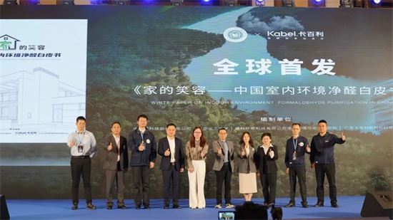 卡百利還成功打造了凈醛超級符號——“醛變水”,該符號凝結了卡百利凈醛藝術漆的創新精神和技術成功。當前卡百利全線產品的甲醛凈化率達 93.3 %,持久凈化率達81.5%。此外,卡百利還聯袂了中國質量檢驗協會人居環境質量專業委員會、清華大學、中建研科技股份有限公司、環能國檢院等單位聯袂編寫《家的笑容——中國室內環境凈醛白皮書》,為建設綠色人居環境貢獻力量。