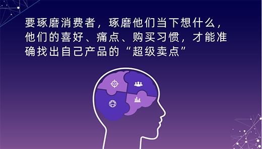 特勞特先生說過:市場的答案顯而易見,關(guān)鍵看你具不具備發(fā)現(xiàn)的眼光。賣產(chǎn)品的最終目的是什么?是被人消費(fèi)。如果不把消費(fèi)者搞定,那怎么讓他買你的產(chǎn)品呢?所以,超級(jí)賣點(diǎn)不是靠企業(yè)主心血來潮憑空捏造的,也不是只需要研究產(chǎn)品、研究市場,最重要的還是要研究透消費(fèi)者,得去了解消費(fèi)者的真實(shí)想法與需求,才能找到擊穿他們心智的那個(gè)點(diǎn)。