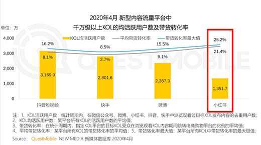 眾多愛分享的用戶,造就了小紅書高效的種草環境,來自第三方機構的數據同樣顯示出這一點。根據QuestMobile2020年的數據,小紅書平均直播帶貨轉化率達到21.4%,而其他內容平臺的轉化率普遍不到10%。