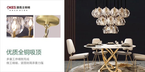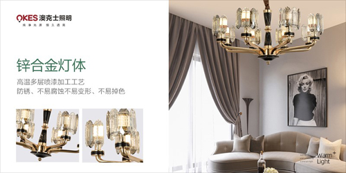 澳克士水晶燈一方面保留了水晶材質(zhì)的堅硬質(zhì)感以及色彩基調(diào),傳遞歷史痕跡與文化底蘊(yùn),同時又摒棄了過于復(fù)雜的肌理和裝飾,簡化了線條,強(qiáng)化了水晶的通透感,價格也更親民。