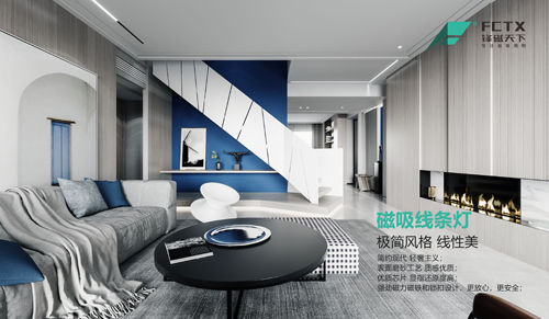 無主燈設計,即以輔助光源替代原有的主燈,不僅讓整個家居空間顯得主次分明,還能營造出溫馨的家居氛圍。鋒磁天下的磁吸燈產品,隱藏在吊頂、地面或者柜子外,既勾勒了空間輪廓,又營造出“見光不見燈”的效果,通過實用性與藝術性的融合,打破了生活、空間、藝術的邊界,迸發出現代家居的哲學之美。