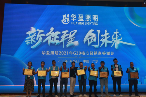 2021年3月15日,華盈照明2021G30核心經銷商答謝會在企業總部——廣東中山隆重舉行!華盈照明總部拿出品質產品及政策誠意力邀核心經銷商蒞臨現場,共同為華盈照明2021年的品牌推廣及市場發展出謀劃策。