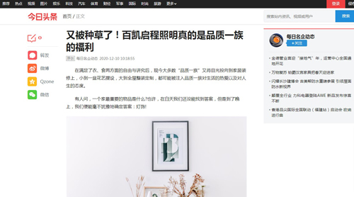 再看這篇由知名信息媒體平臺《今日頭條》報道的文章:《又被種草了!百凱啟程照明真的是品質一族的福利》,以整理展示消費者熱門評論的方式為大家展示了百凱啟程照明信得過的好品質和更超群的好設計,著實讓不少網友在閱讀過后真的被“種草”了。