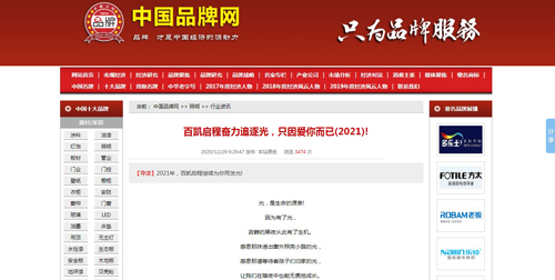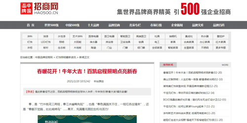 耐心瀏覽,用心閱讀,細細品味,相信大家透過《中國品牌網》、《中國企業家?品牌周刊》、《中國品牌招商網》等各大新聞資訊平臺刊載的百凱啟程文章報道,定能清晰感受到百凱啟程照明的品牌光輝及品牌態度,對其產生更強烈的興趣與好感。