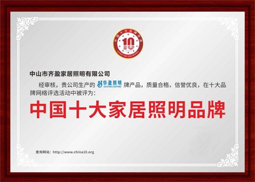 在照明行業(yè)深耕多年,華盈照明先后斬獲了“中國十大家居照明品牌”、“中國照明家居行業(yè)AAA級誠信單位”、“中國著名品牌”、“AAA級誠信經(jīng)營示范單位”等榮譽稱號,在業(yè)內(nèi)擁有廣泛的知名度和影響力。