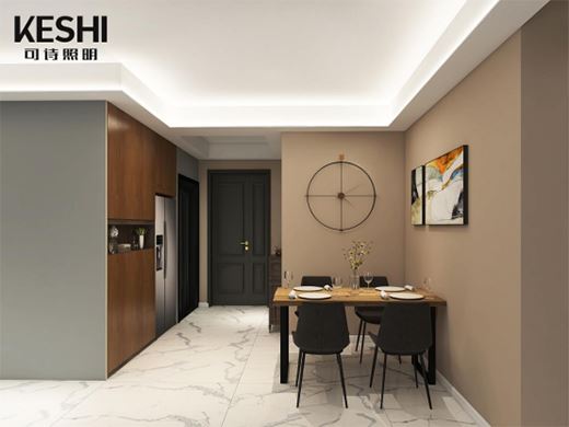 聚焦于這些燈光設計方案,細細品味,還能感受到KESHI可詩照明處處“以人為本”的良苦用心。如擔心家中長輩摸黑起床不安全,于是方案中添加了踢腳線燈及地埋線性燈,為起夜提供滿滿的安全感;擔心小孩子食欲差吃不下飯,于是餐桌上方安裝高顯指燈具,還原食物本真色彩,勾起家人食欲;擔心大衣柜進深過深,用戶需要摸黑尋找藏在最里面的衣服,于是方案中有了衣柜內部安裝感應線性燈的設計……可謂是細節處處見真心!