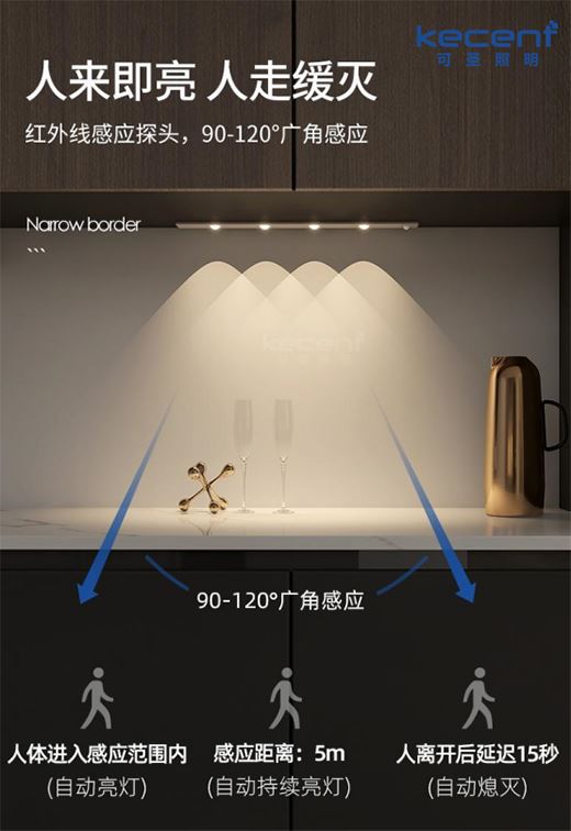 這里稍微展開(kāi)講講紅外感應(yīng)這種模式,在日常生活中,燈具的高敏感應(yīng)球在精準(zhǔn)感應(yīng)到有人走過(guò)來(lái)后,就會(huì)自動(dòng)亮燈;相對(duì)應(yīng)的,當(dāng)感應(yīng)到人離開(kāi)后,便會(huì)自動(dòng)熄燈。值得一提的是,這種感應(yīng)模式擁有90-120°的廣角感應(yīng),無(wú)論人從哪個(gè)角度進(jìn)入感應(yīng)范圍,燈具都能自動(dòng)啟動(dòng),人離開(kāi)后也會(huì)延遲15s再自動(dòng)熄燈,真正做到“人來(lái)即亮,人走緩滅”。