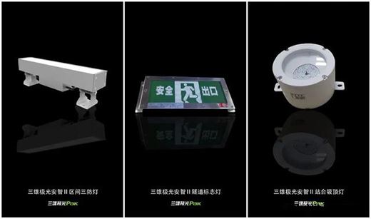其中包括三雄極光最新上市的這3款智能軌道交通應急燈具:安智II區間三防燈、安智II隧道標志燈、安智II 站臺吸頂燈。