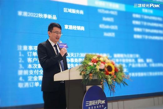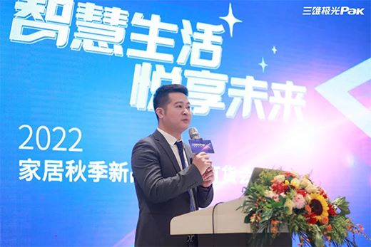三雄極光家居事業部副總經理趙峰分別從“2022年上半年家居業務版塊銷售情況”“2022年春季新品大全”“整裝專供產品規劃”“家居品質提升措施”等方面重點剖析了“2022年家居工作整體規劃”。