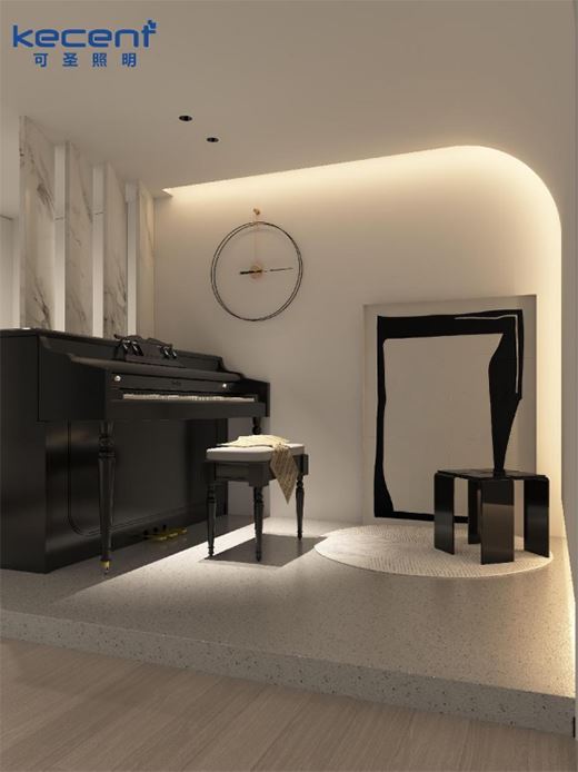 KECENT可圣照明本期要向大家分享的這一則客戶案例,丈夫與妻子是因鋼琴而結緣的,所以他們訴求中包含的非常重要一點是,在屋內要為心愛的鋼琴留有一處展示的空間,而且這個小空間的高級感與氛圍感缺一不可。