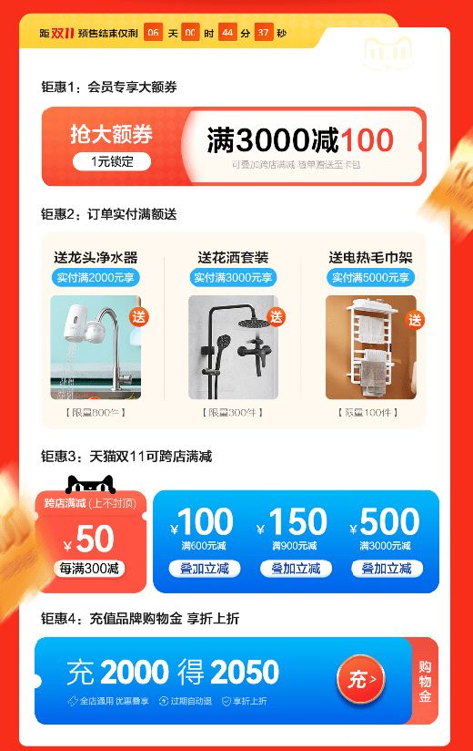 公牛官方旗艦店的預熱活動,同樣是以“滿減”為主。
