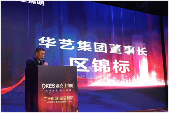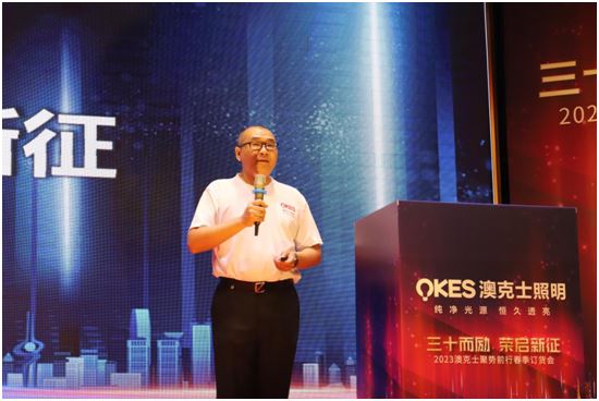 發布會伊始,澳克士照明總經理潘振華先生登臺發表致辭,向在座的經銷商家人們表示熱情問候。潘總表示在澳克士照明成立30周年的慶典之年,凝聚共識是關鍵。潘總以廣闊的視角,深度整體回顧了澳克士照明三十年波瀾壯闊的發展歷史,現場掌聲不斷。