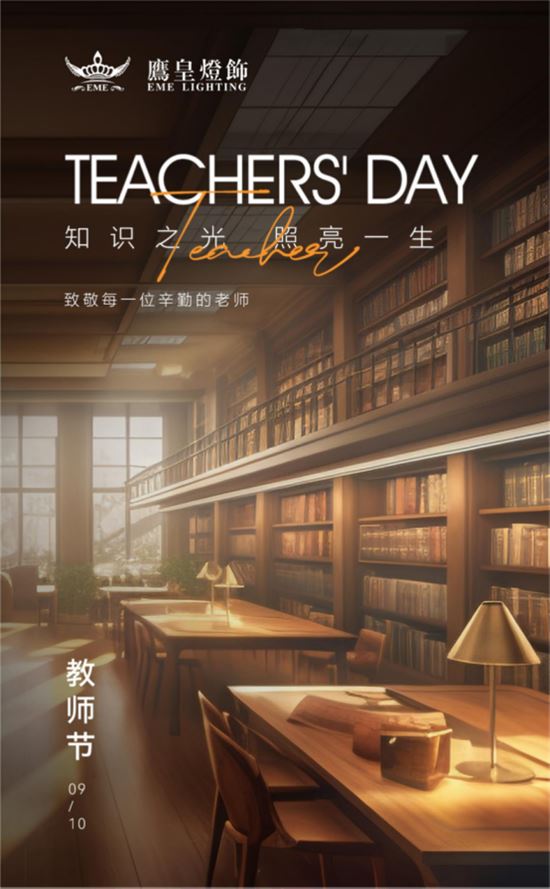 鷹皇燈飾愿與您一同探索光影的無限可能,讓綠色、健康、藝術、優質的燈飾照明陪伴您度過每一個美好時光。在這個特別的日子里,讓我們向辛勤付出的老師們獻上最誠摯的祝福,愿您們在教書育人的道路上越走越寬廣!