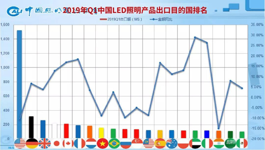 2019年Q1中國(guó)LED照明產(chǎn)品出口目的國(guó)排名