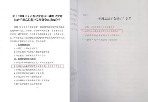 近日,為進一步激發(fā)基層黨建工作活力,經(jīng)市委黨建辦、市委組織部研究決定對吉安市木林森光電有限公司黨支部等19家單位被評為“全市2018年度‘一樹兩強’基層黨建示范點”的黨支部,(據(jù)悉此次共有46家單位參與基層黨建示范點申報,而受到表彰的只有19家單位)。